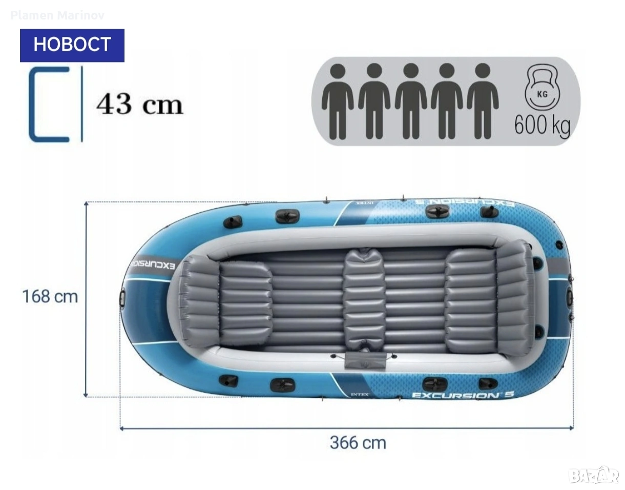 Надуваема 5 места лодка с извънбордов електрически мотор → Обява 53968316