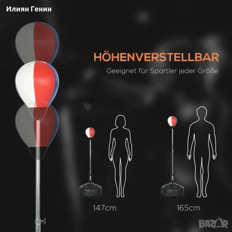Регулируема височина: Рефлексната топка може да се регулира между 147 и 165 см височина, за да позволи оптимална тренировка както за тийнейджъри, така и за възрастни, начинаещи и професионалисти.