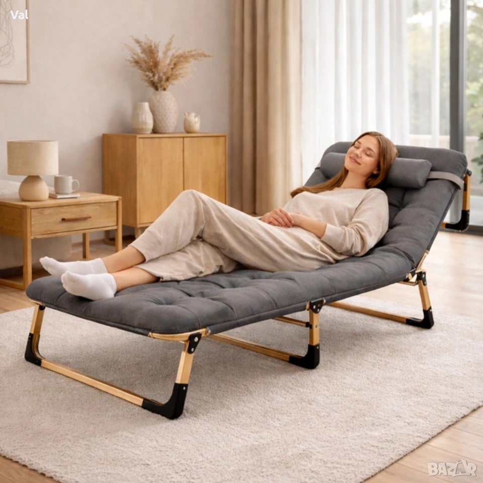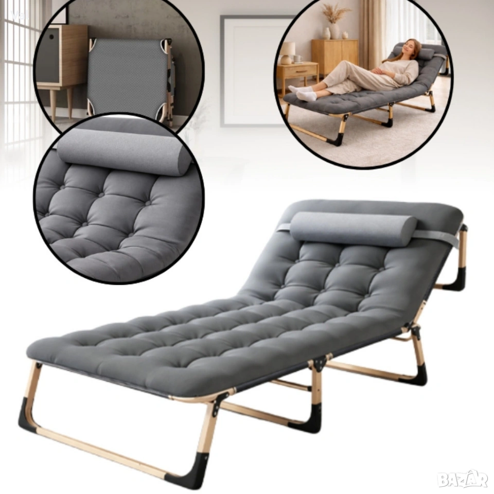 Сгъваемо къмпинг легло с матрак (180 см) – Регулируем градински шезлонг с възглавница
