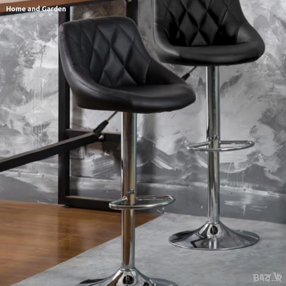 Бар стол с регулируема височина и въртяща функция – еко кожа, хромирана основа. Седалката се регулира от 60 до 82 см, макс. височина до облегалката 106 см. Ширина 45 см, дълбочина 37 см. Въртящ механизъм и поставка за крака. Подходящ за дома и заведения.