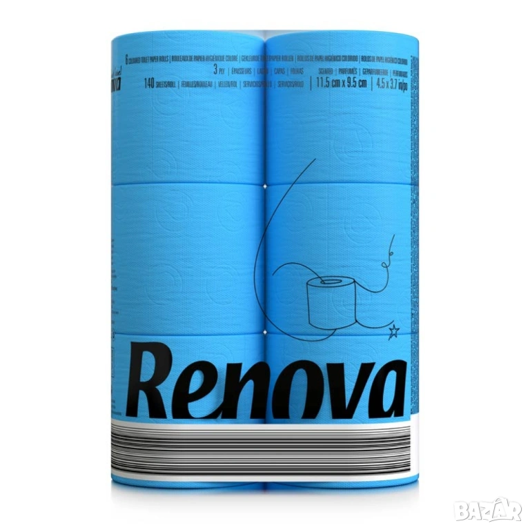 Луксозна тоалетна хартия, Renova Black Label, синя тоалетна хартия, 3-пластова тоалетна хартия, дизайнерска хартия за баня, Renova цена София, цветна тоалетна хартия, ароматизирана тоалетна хартия.