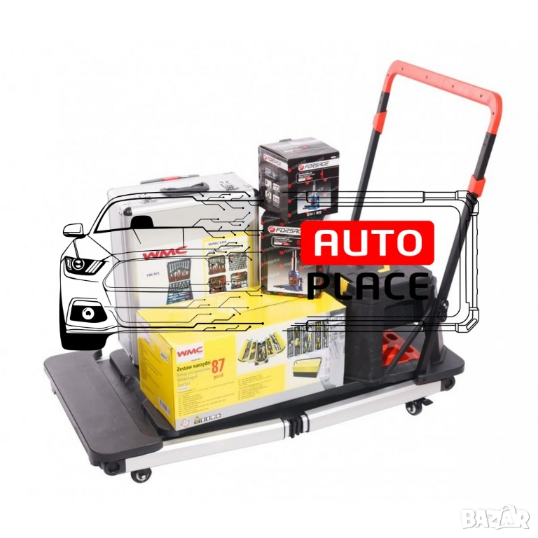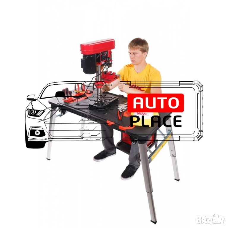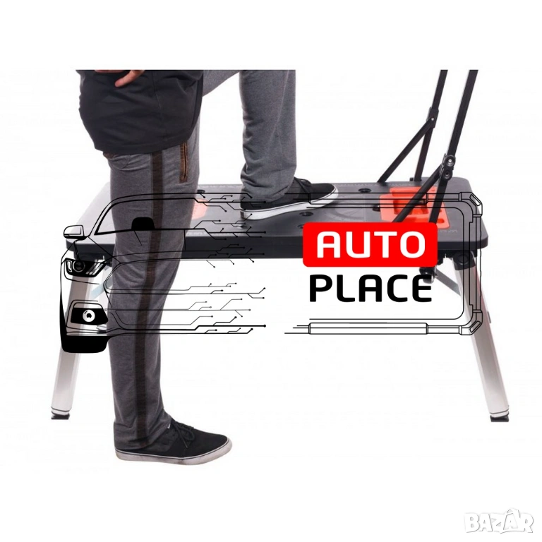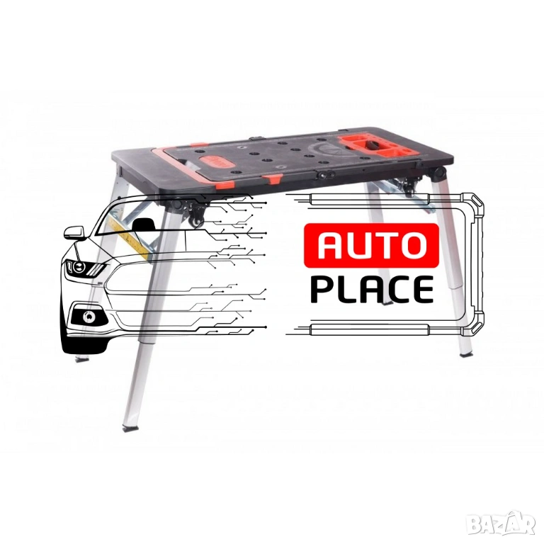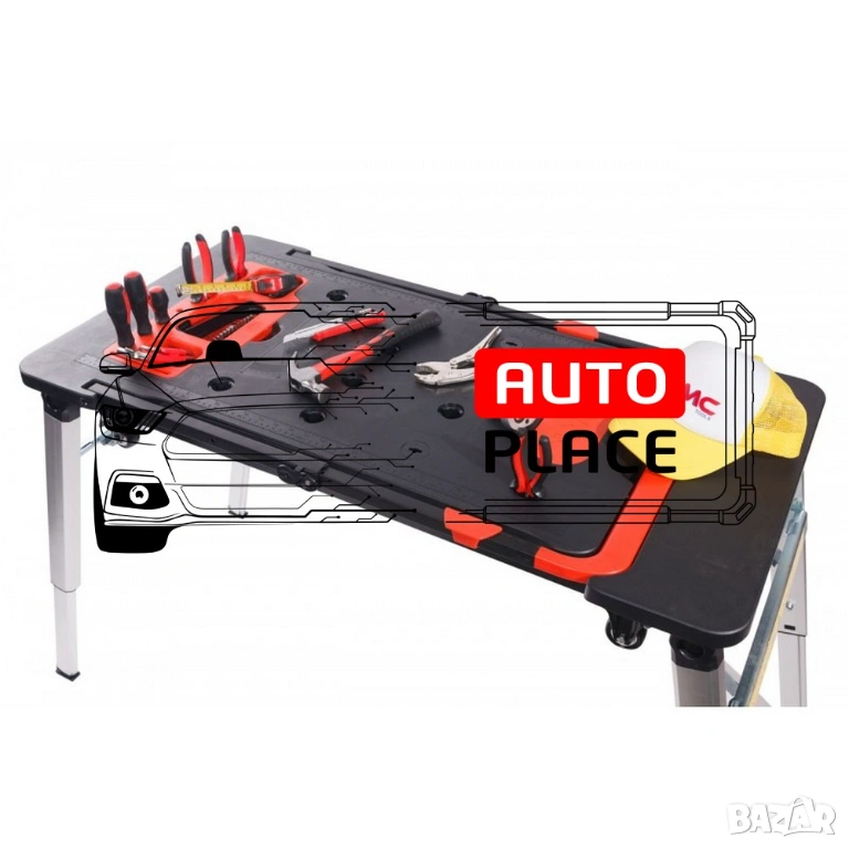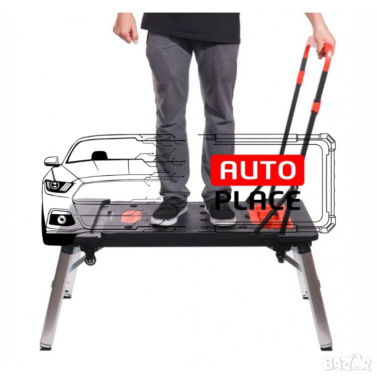 Многофункционална работна маса, която има голяма работна повърхност, която улеснява рязането и пробиването. Отстрани на масата има вградено чекмедже. Може да се използва като стабилно скеле или работна платформа. Комплектът съдържа колела, благодарение на които масата се превръща в количка. Масата може да се използва в складове, магазини и работилници. Също така функционира като лежанка при работа в гаражи или автосервизи. Може лесно да се сгъне в багажника на автомобил и да се транспортира. Масата е изработена от плътна ABS пластмасова сплав. Краката са изработени от алуминий и имат регулируема височина, рамката е изработена от плътен метал, фиксиращ цялото.