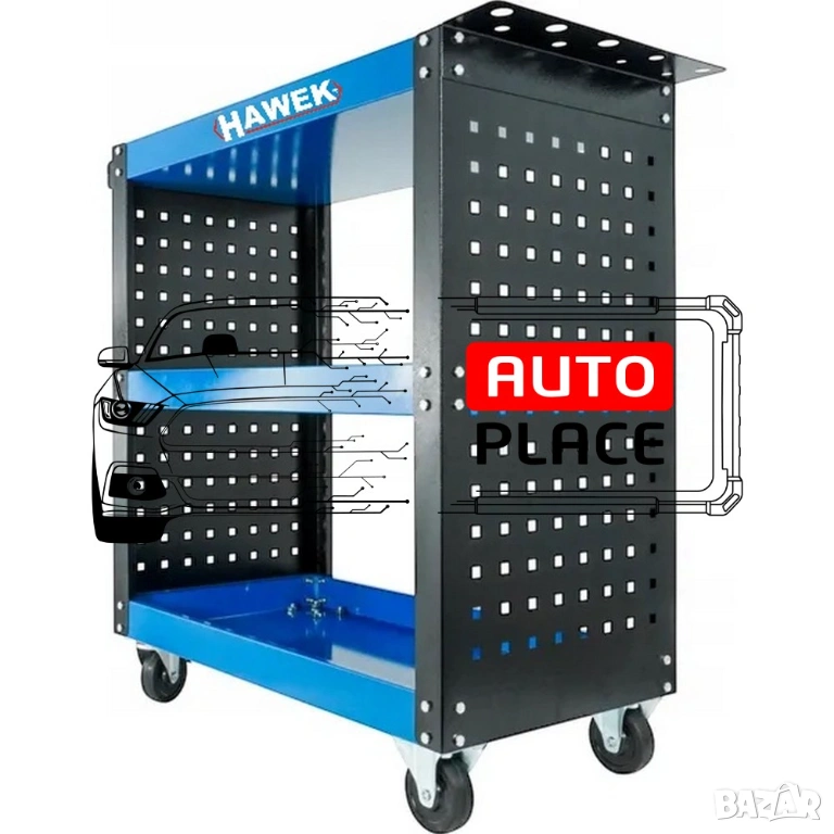 Количка за инструменти с 3 рафта, гръб и поставка за отвертки HAWEK