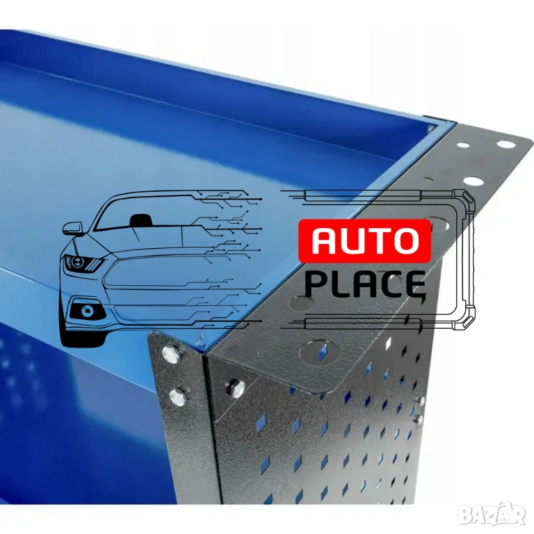 Количка за инструменти със стени за закачане на инструменти , количката е с четири колела с лагери и интегрирана дръжка , включени 12бр куки за инструменти.