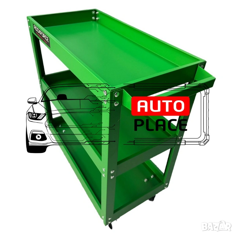 Количката за инструменти е снабдена с дръжка за по-лесно придвижване, както и с две въртящи се колела отстрани на дръжката, което увеличава маневреността на количката.