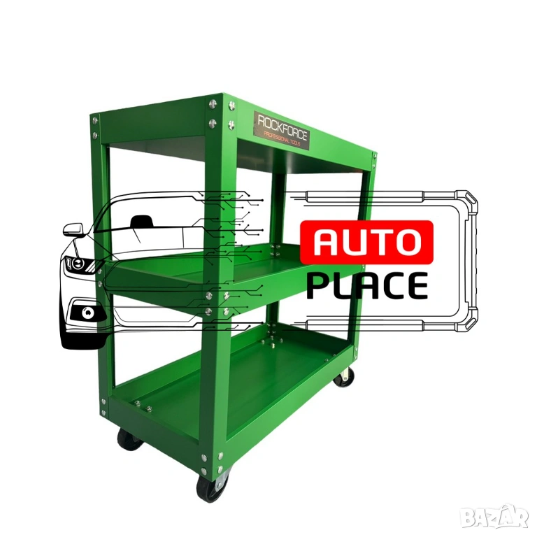 Специализирана количка за инструменти с 3 рафта на марката ROCKFORCE с усилена конструкция .