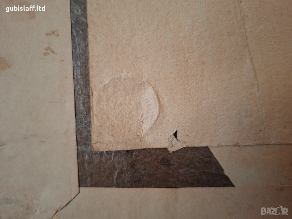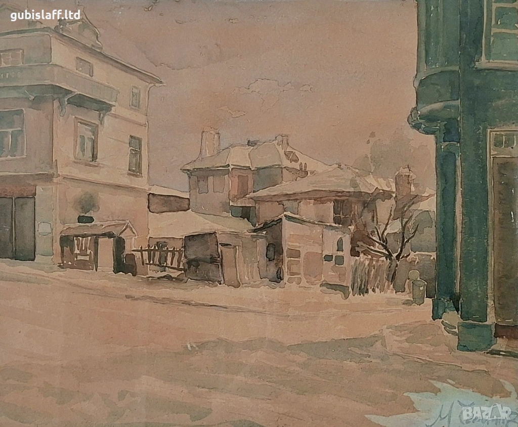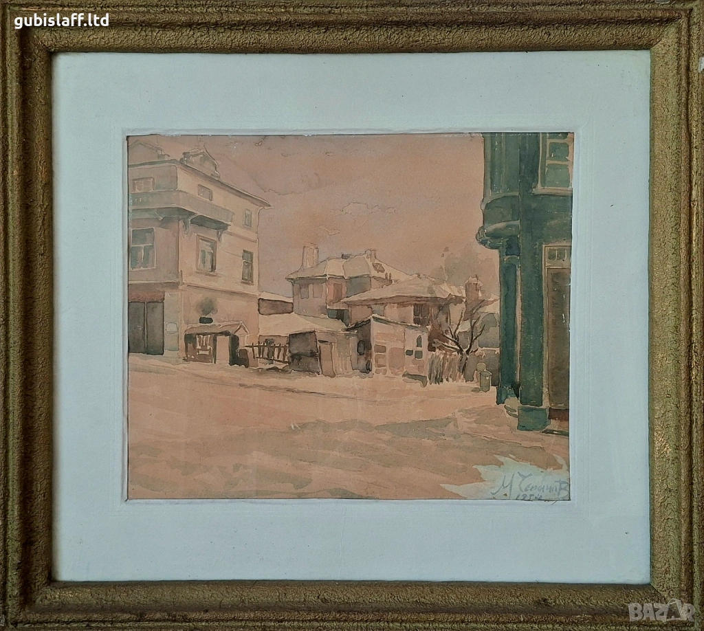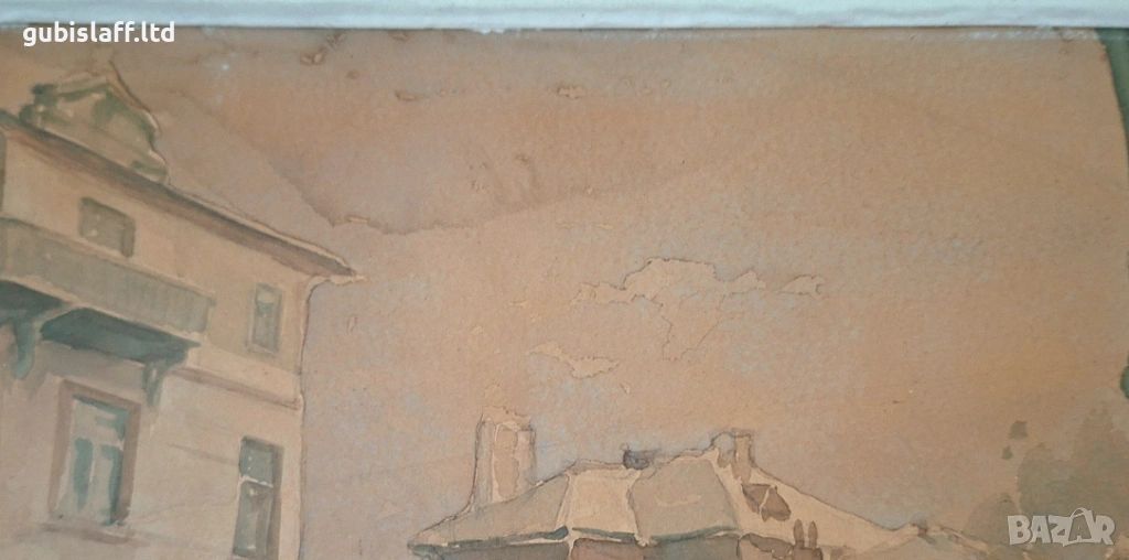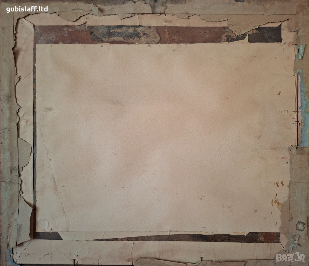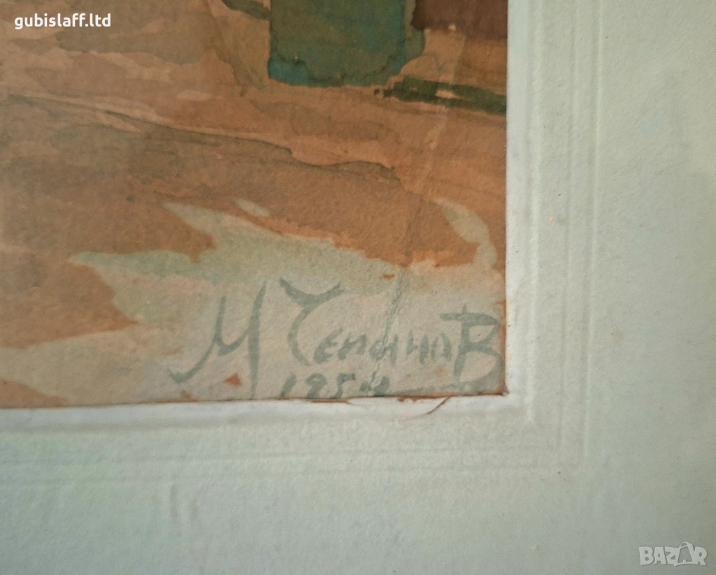 Акварел, картон, размер 40х33 см., размер с рамка 61х56 см., сух печат на картона отзад.