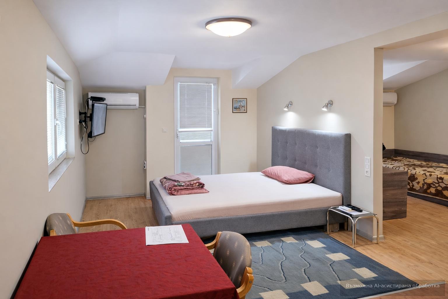 Месечният наем е 750 EUR. Наличието на отопление на ток и позицията в близост до спирки гарантират удобство и практичност.