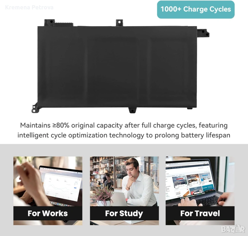 【Спецификации】 Тип батерия: Литиево-йонна; Напрежение: 11.52V; Капацитет: 42Wh/3-клетъчна; Живот на батерията: До 500 цикъла на презареждане през целия живот на батерията.