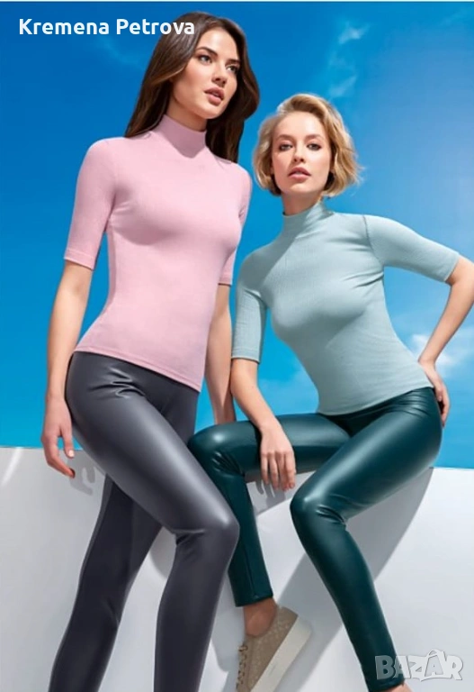Снимка 1 : Нови Комплекти от Клин от екокожа и Поло от релефен трикотаж с къс ръкав.