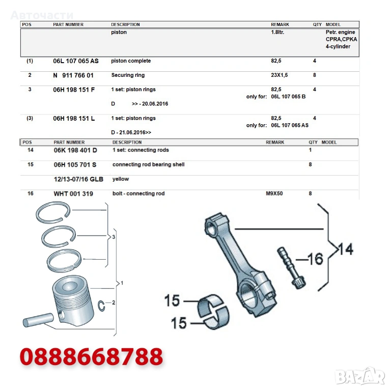 VAG Number connecting rod / мотовилка (биела) : 06K 198 401 D / 06K198401D