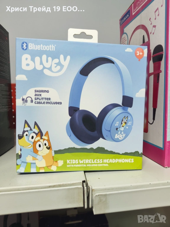Продавам детски безжични слушалки с любимите герои от анимационното филмче Bluey (Блуи).