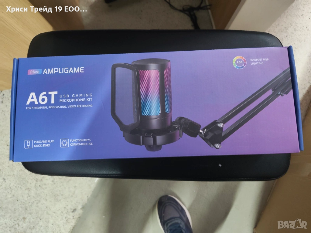 Продавам геймърски USB микрофон Fifine Ampligame A6T – пълен комплект.