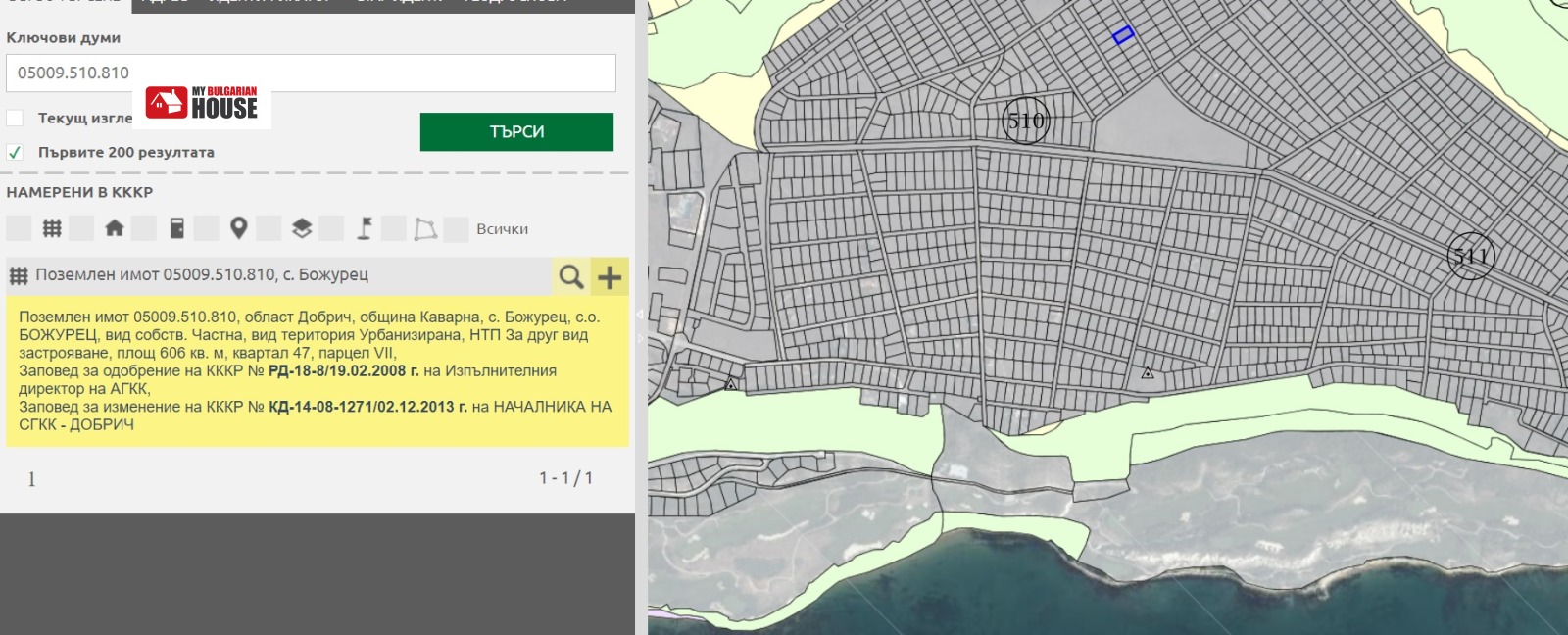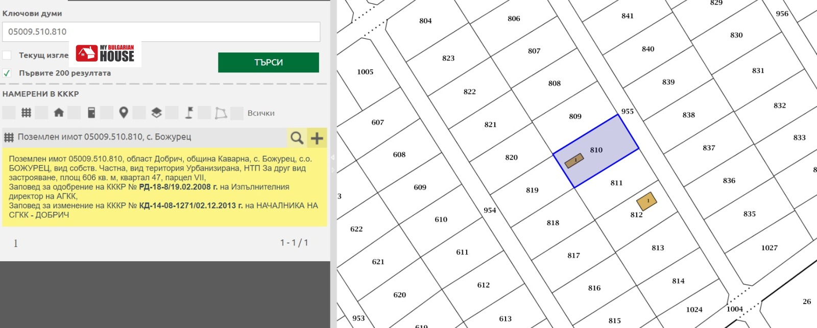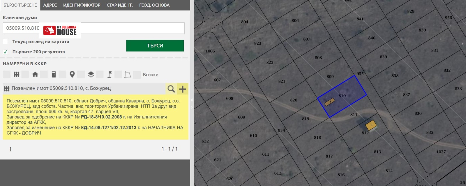 - кадастрален номер: 05009.510.810