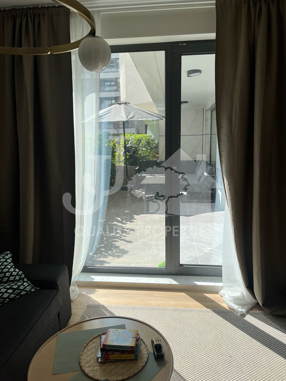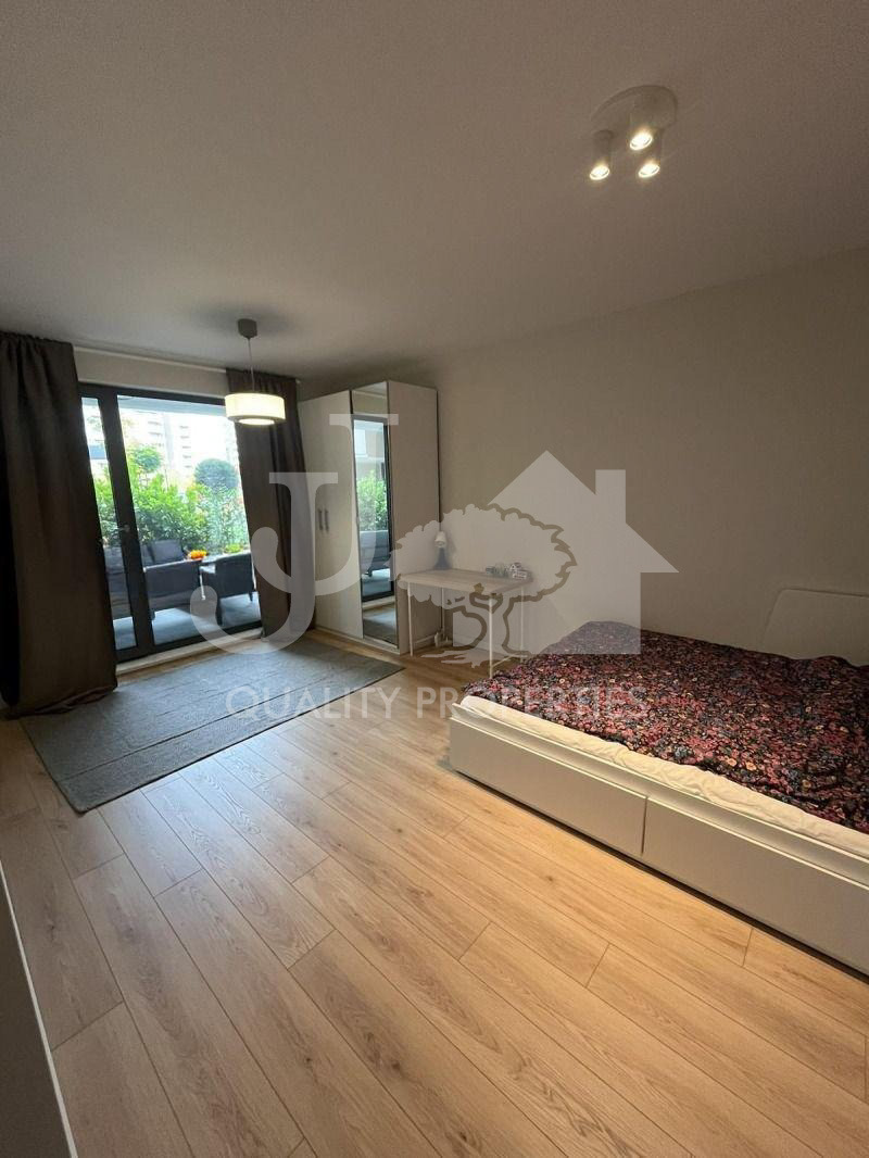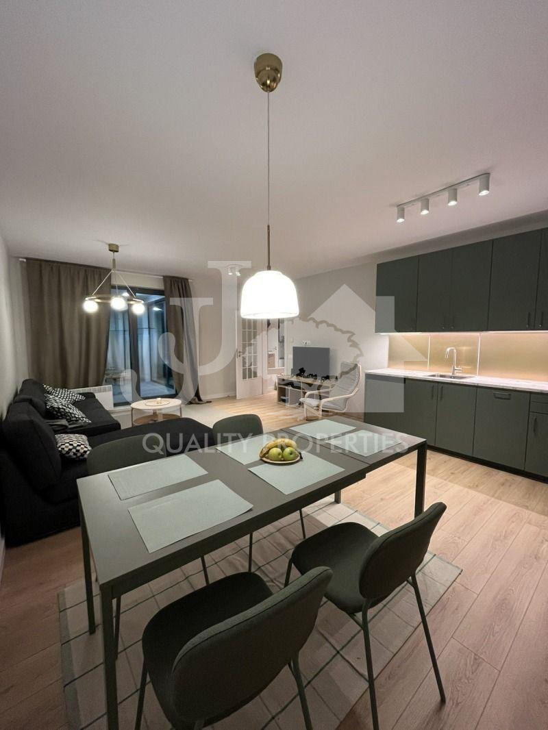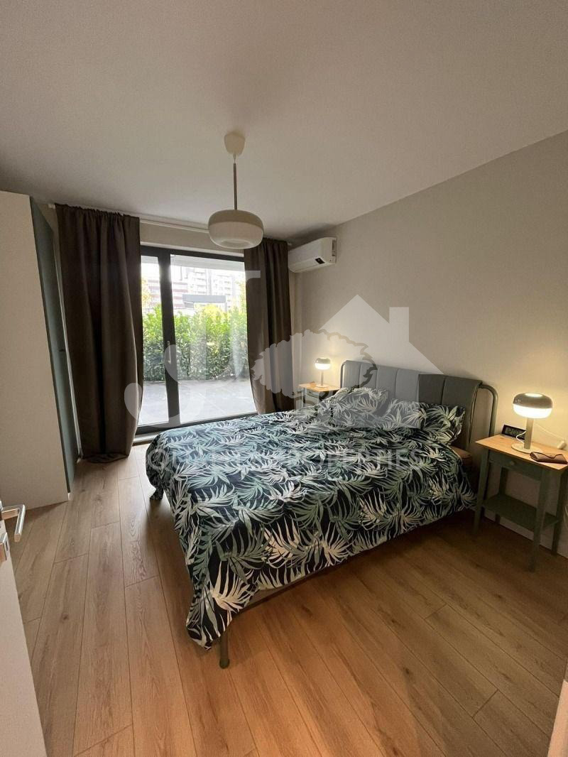 Предлагаме на Вашето внимание напълно обзаведен тристаен апартамент, находящ се в нов затворен комплекс в близост до Бизнес парк и метростанция Бизнес парк в кв. Младост 4. Сградата е с Акт 16, с контрол на достъпа, с отлични и поддържани общи части, зелени площи и детски площадки. Имотът е разположен на партерен етаж и има следното разпределение: вх. антре, дневна с кухня и трапезарна част, две спални, баня с тоалетна, отделна тоалетна и много хубава тераса 20 кв.м. Жилището е чисто ново, като до момента не е живяно в него! Обзаведено е с абсолютно всичко необходимо, мебели и ел. уреди от най-висок клас. Отоплението е на газ, има и климатици. Към апартамента има и възможност за наемане на подземен гараж на допълнителна цена от 150 евро на месец.