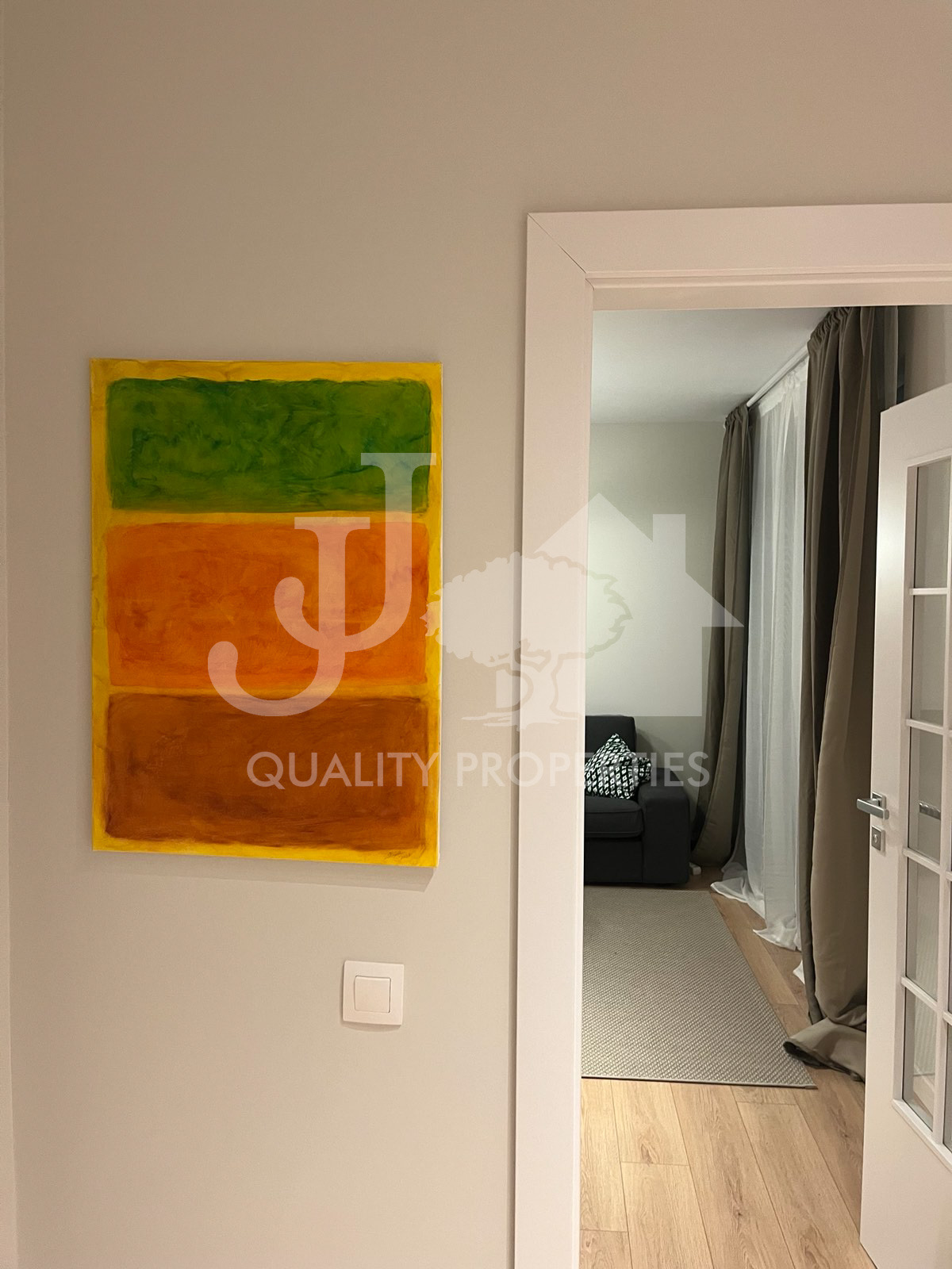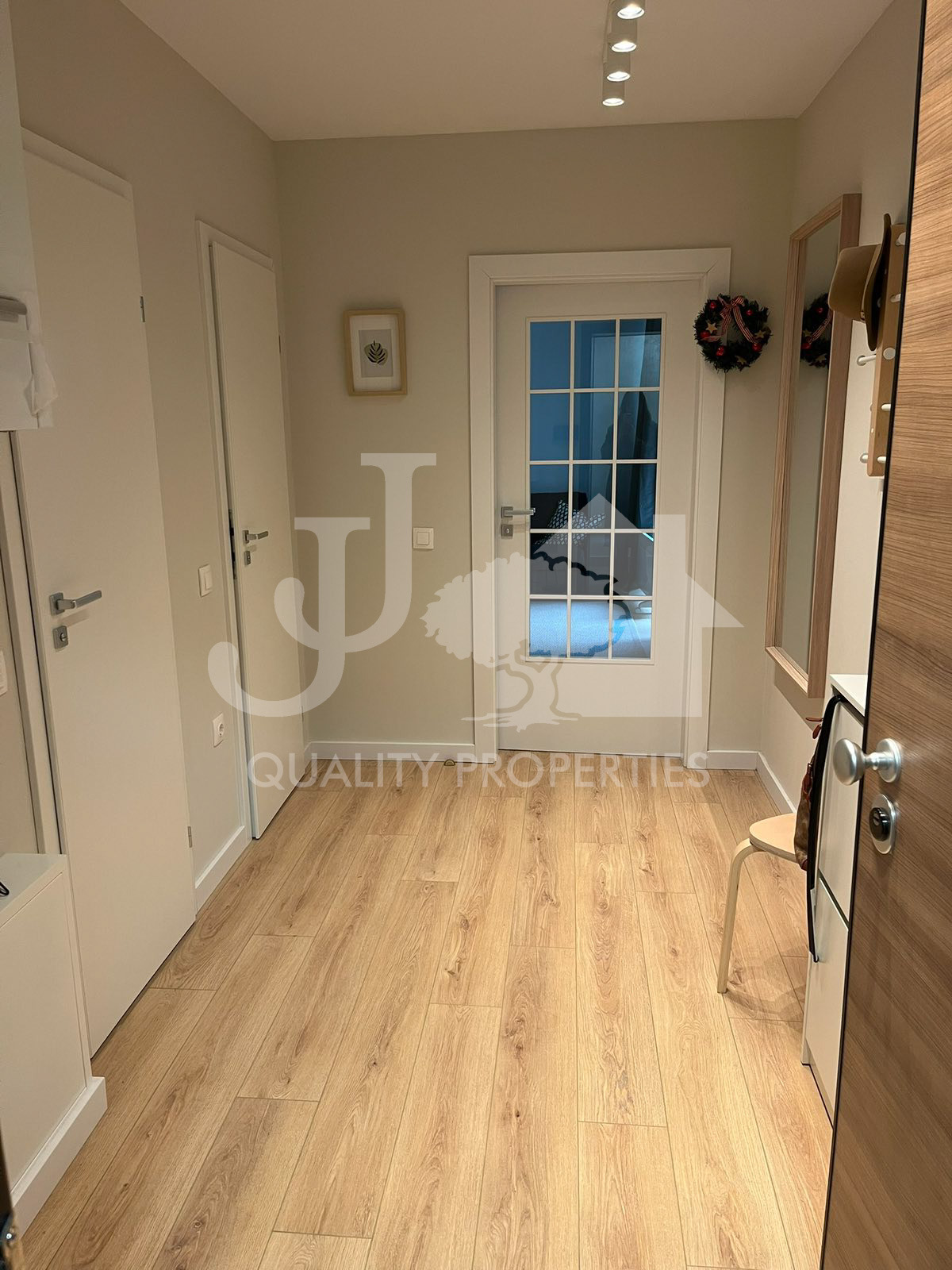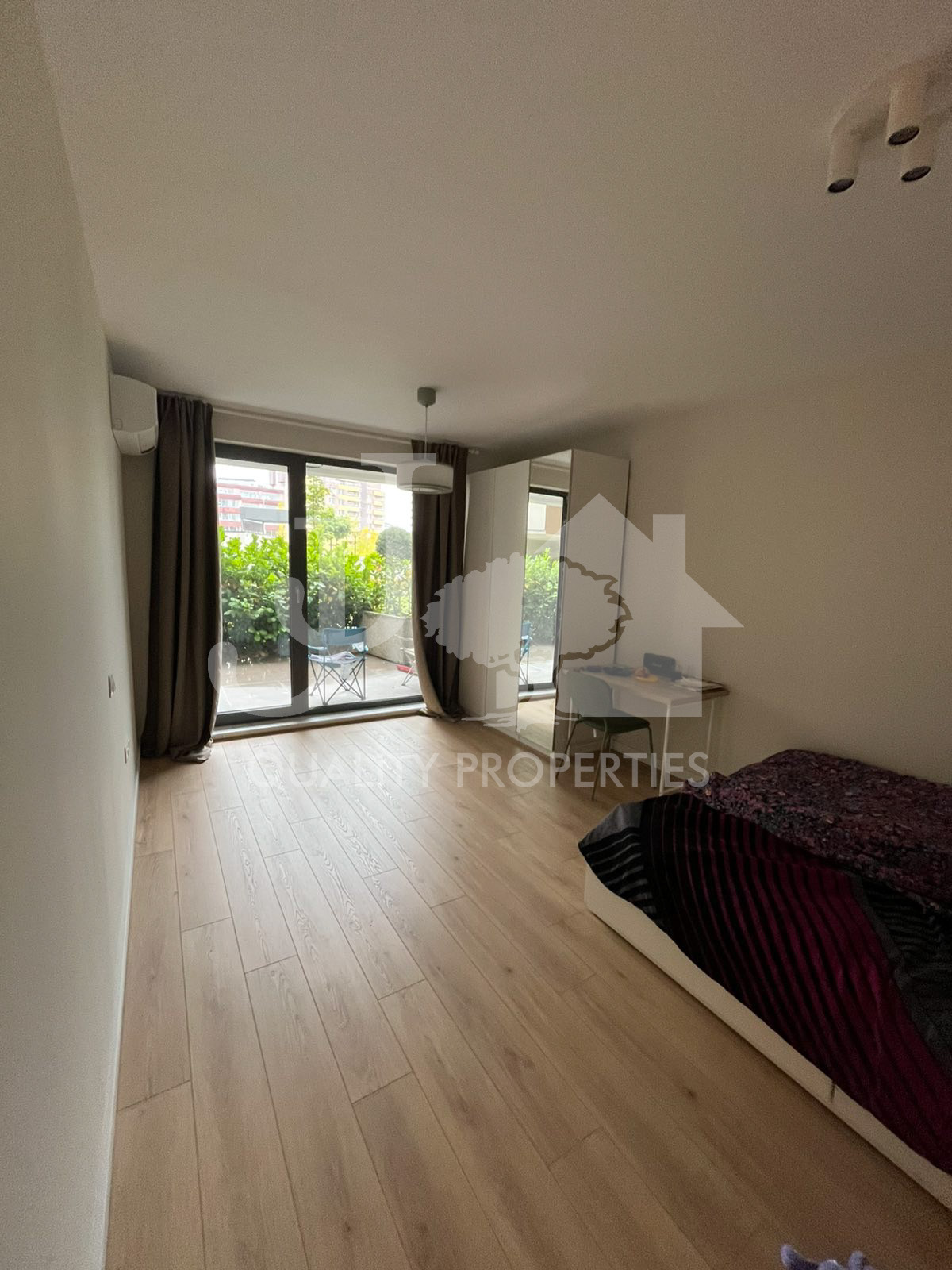 Предлагаме на Вашето внимание напълно обзаведен тристаен апартамент, находящ се в нов затворен комплекс в близост до Бизнес парк и метростанция Бизнес парк в кв. Младост 4. Сградата е с Акт 16, с контрол на достъпа, с отлични и поддържани общи части, зелени площи и детски площадки. Имотът е разположен на партерен етаж и има следното разпределение: вх. антре, дневна с кухня и трапезарна част, две спални, баня с тоалетна, отделна тоалетна и много хубава тераса 20 кв.м. Жилището е чисто ново, като до момента не е живяно в него! Обзаведено е с абсолютно всичко необходимо, мебели и ел. уреди от най-висок клас. Отоплението е на газ, има и климатици. Към апартамента има и възможност за наемане на подземен гараж на допълнителна цена от 150 евро на месец.