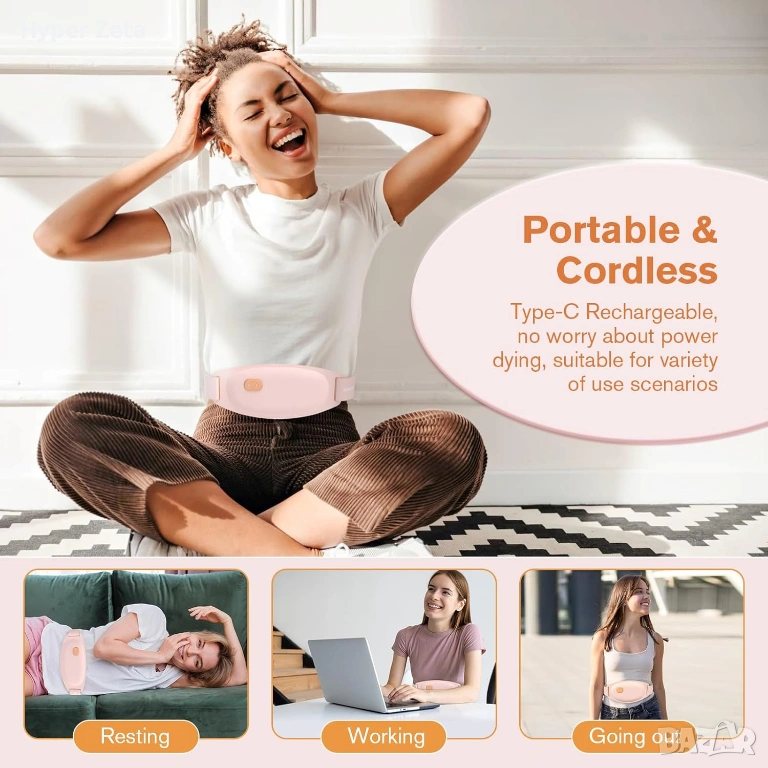 Преносим електрически колан с подгряване и масаж, създаден за облекчаване на менструални болки и напрежение в корема и кръста. Удобен, безжичен и лесен за използване навсякъде.