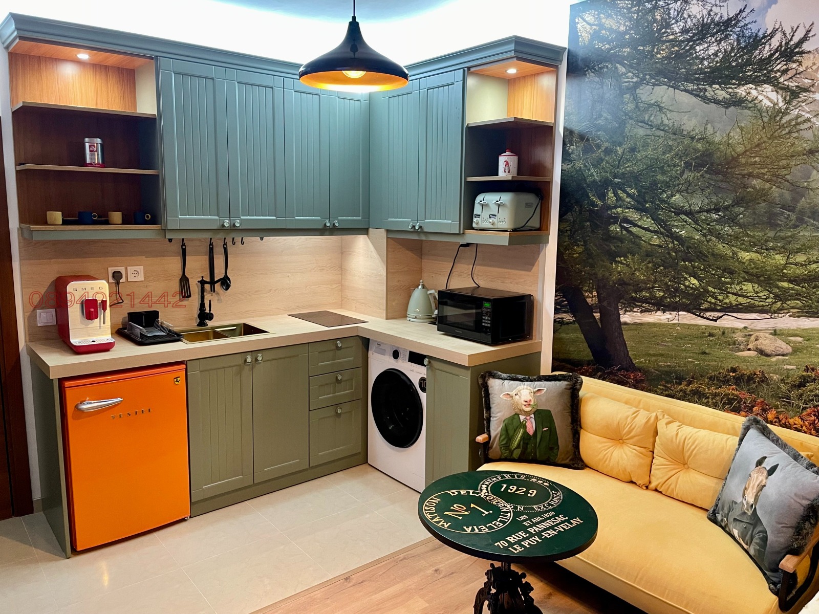 Разполага със спалня с гледка към гората разтегателен диван,котлони, микровълнова фурна,пералня със сушилня най висок клас кафе машина,хладилник,телевизор.