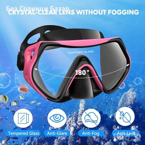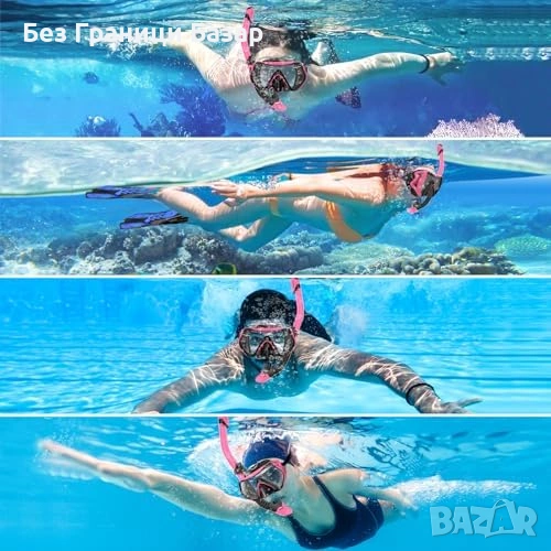 Нов Комплект за шнорхелинг с маска и сух шнорхел 180° панорама за море