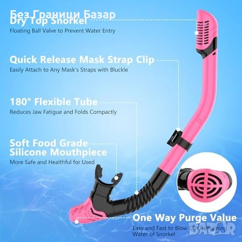 Маска за шнорхелинг с шнорхел за възрастни, подходяща за плуване и гмуркане