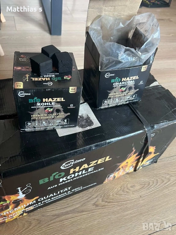 Въглища за наргиле. 18 кг нови. Едната опаковка е отворена. Органично качество.