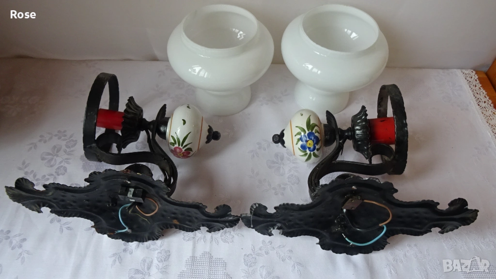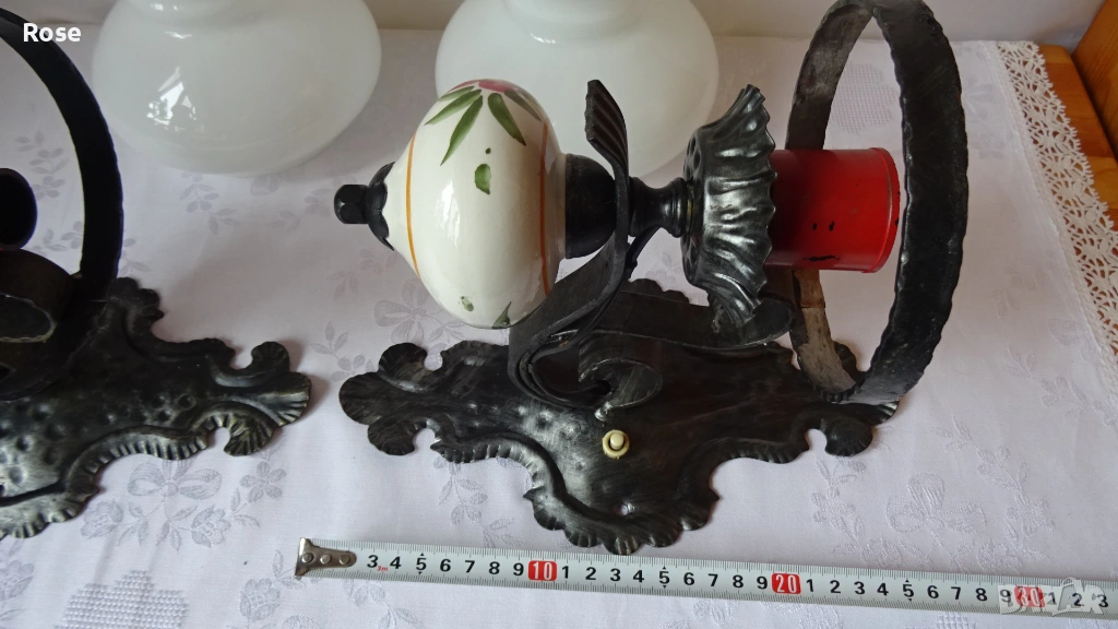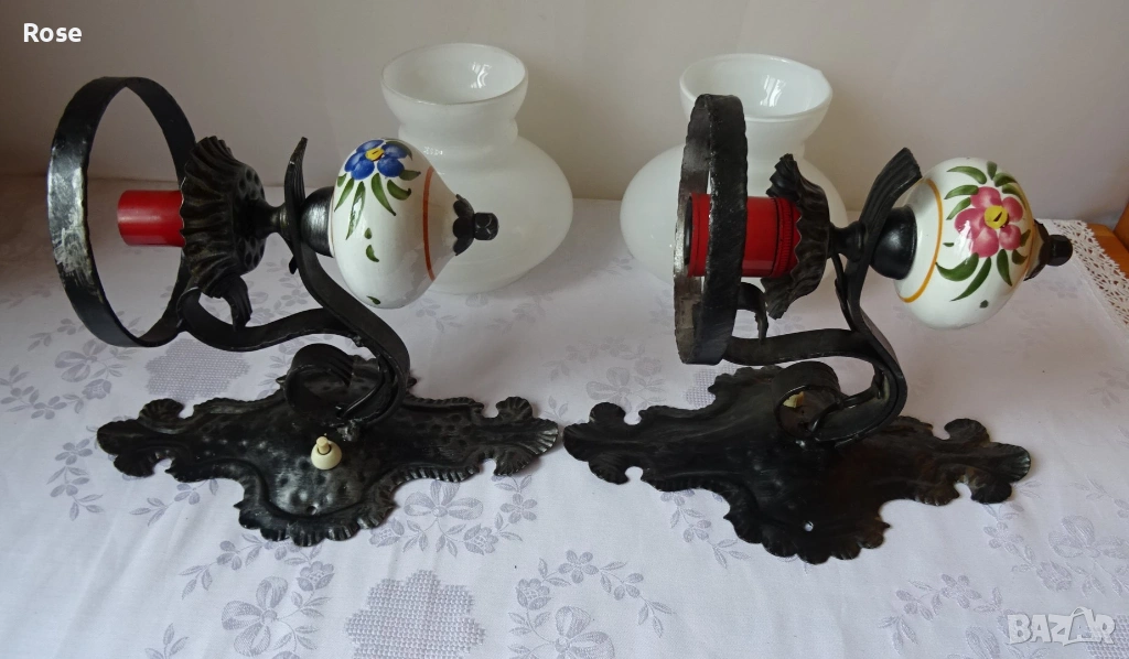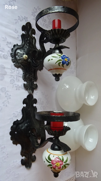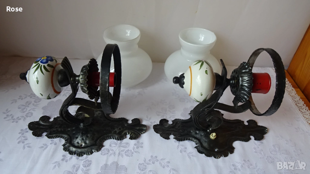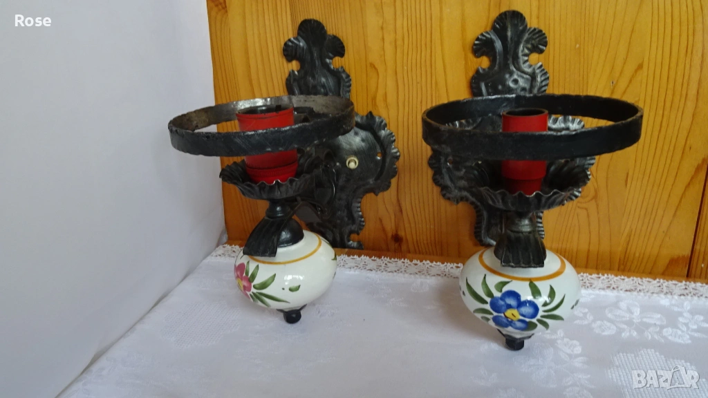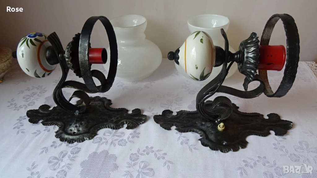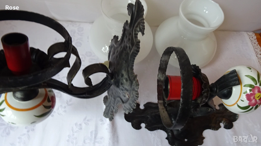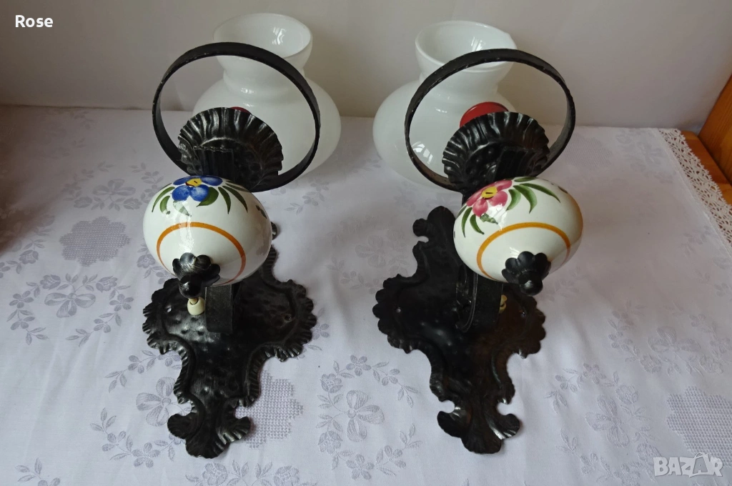 ковано желязо и порцеланови елементи с декоративни мотиви.