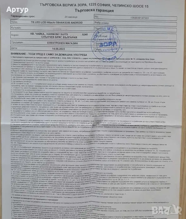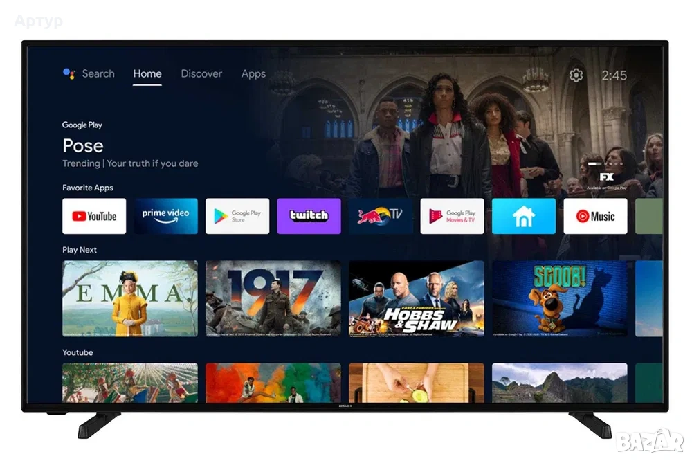 Hitachi 55" Smart телевизор с дефектен дисплей