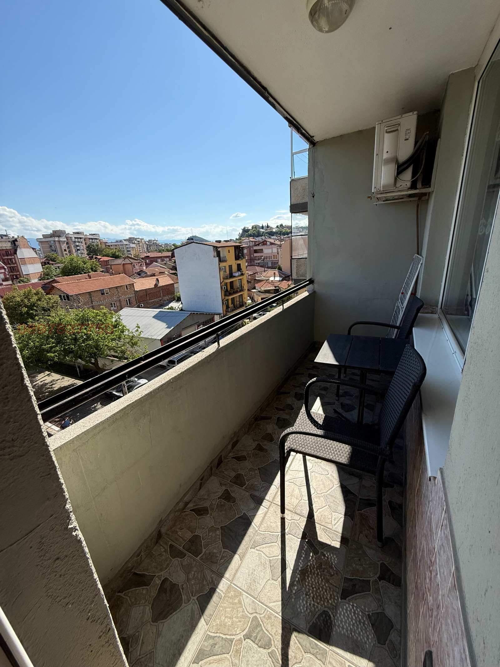 Тристаен обзаведен апартамент на среден етаж южно изложение.Апартамента се състои от голям хол,кухня,спалня ТРИ ОДЕЛНИ ПОМЕЩЕНИЯ баня с тоалетна,две тераси.Към апартамента има изба 6кв.м и таванско помещение 7кв.м.