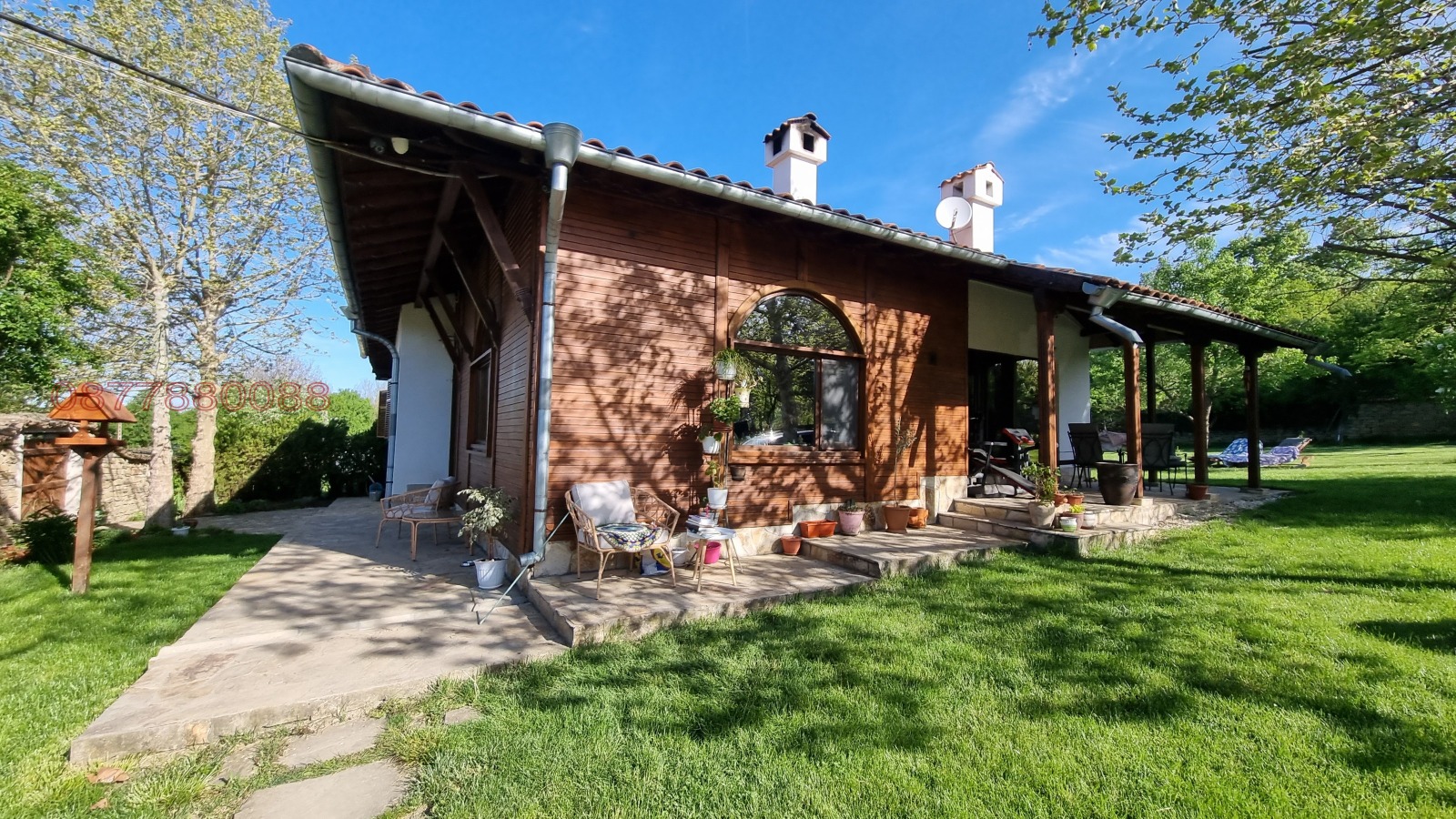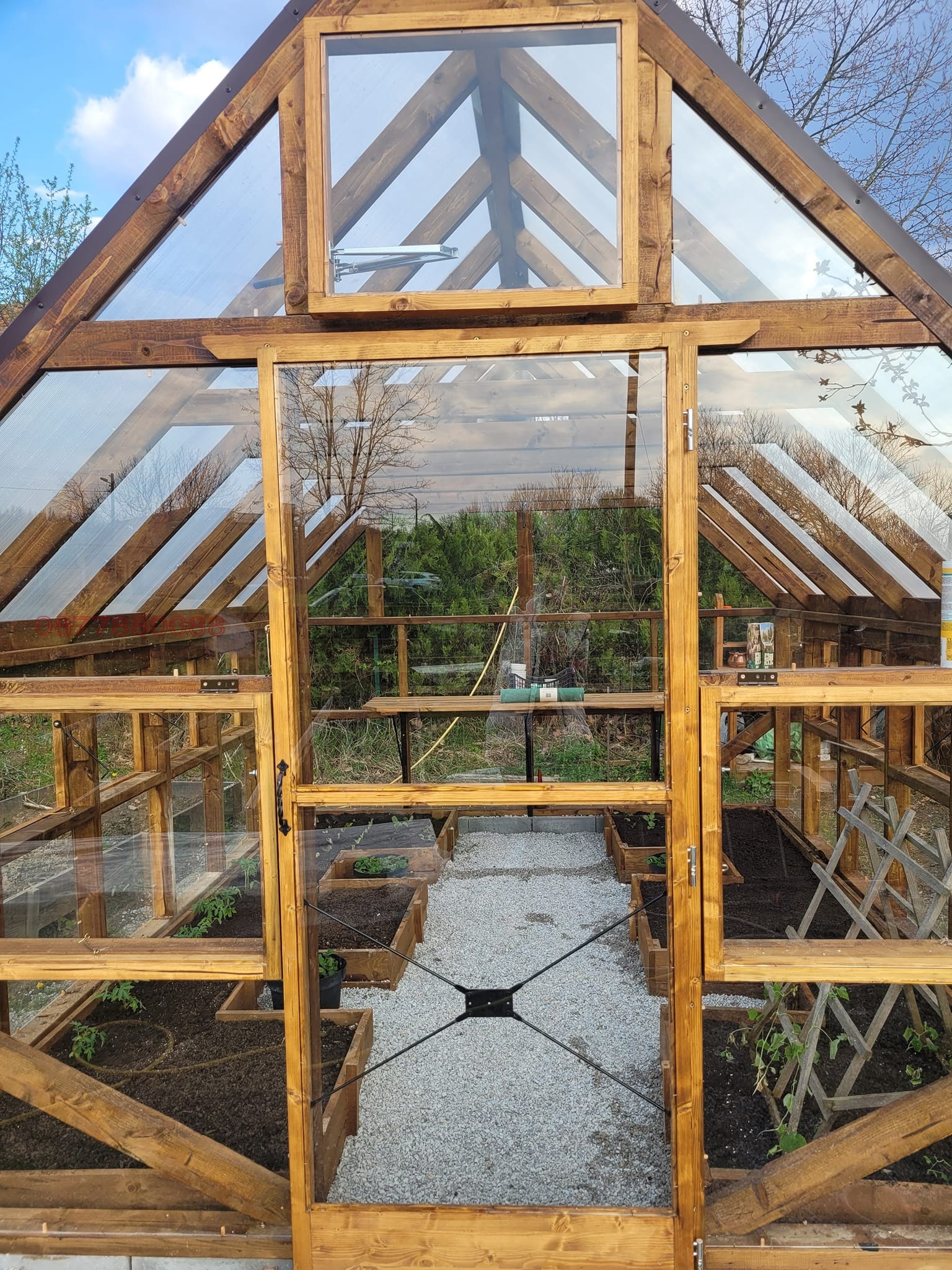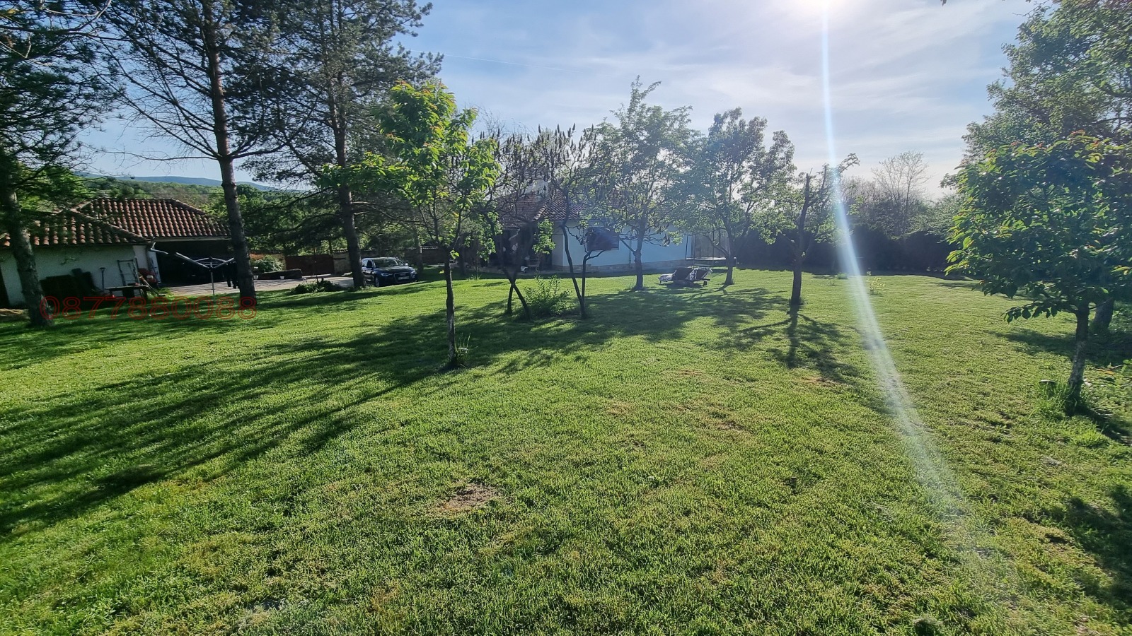 Огромен 2000 кв.м. двор с десетки дръвчета и жив плет. Автоматизирано напояване. Биологично чиста градина с повдигнати лехи, овошки, автоматизирана система напояване, къщичка, дървено-стъклена оранжерия;