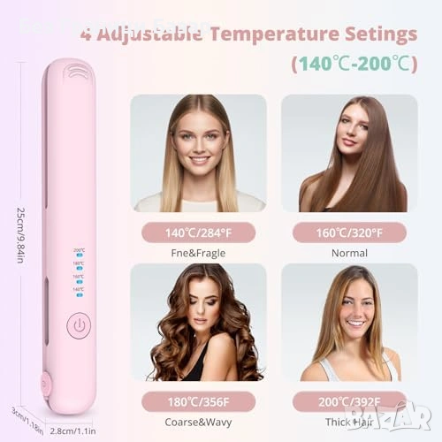 Нова бяла Мини безжична преса и маша за коса жени 2 в 1 4 температури
