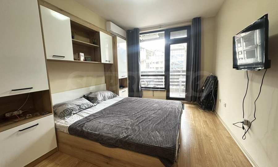 Самостоятелна спалня, предлагаща голямо легло с качествен матрак, гардероб с достатъчно място за съхранение, плазмен телевизор и балкон;