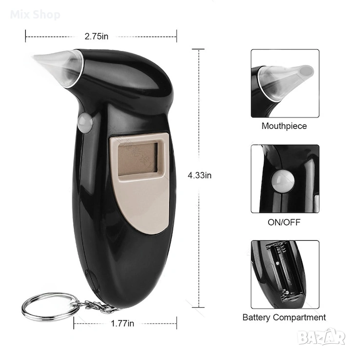 Дигиталният тестер за алкохол в дъха има ключодържател, много удобен за носене.