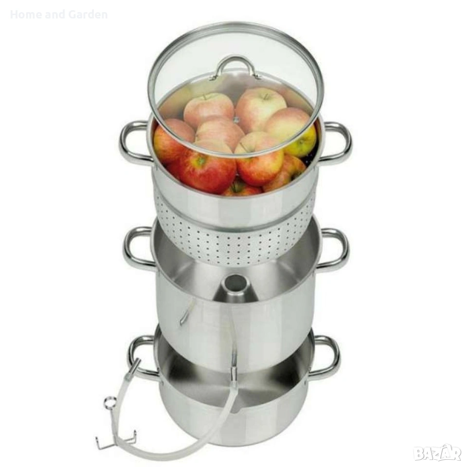 Соковарката от неръждаема стомана с оптимален обем от 8 литра е подходяща за приготвяне на сокове от плодове, зеленчуци и билки, както и на желе и ликьор. Извлича напълно хранителните вещества и фибри.
