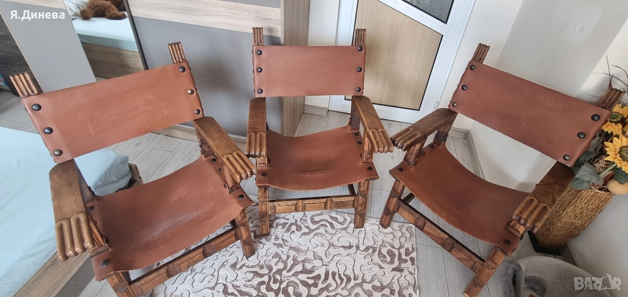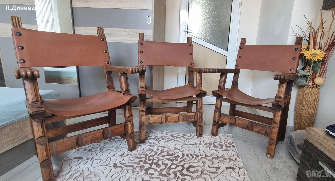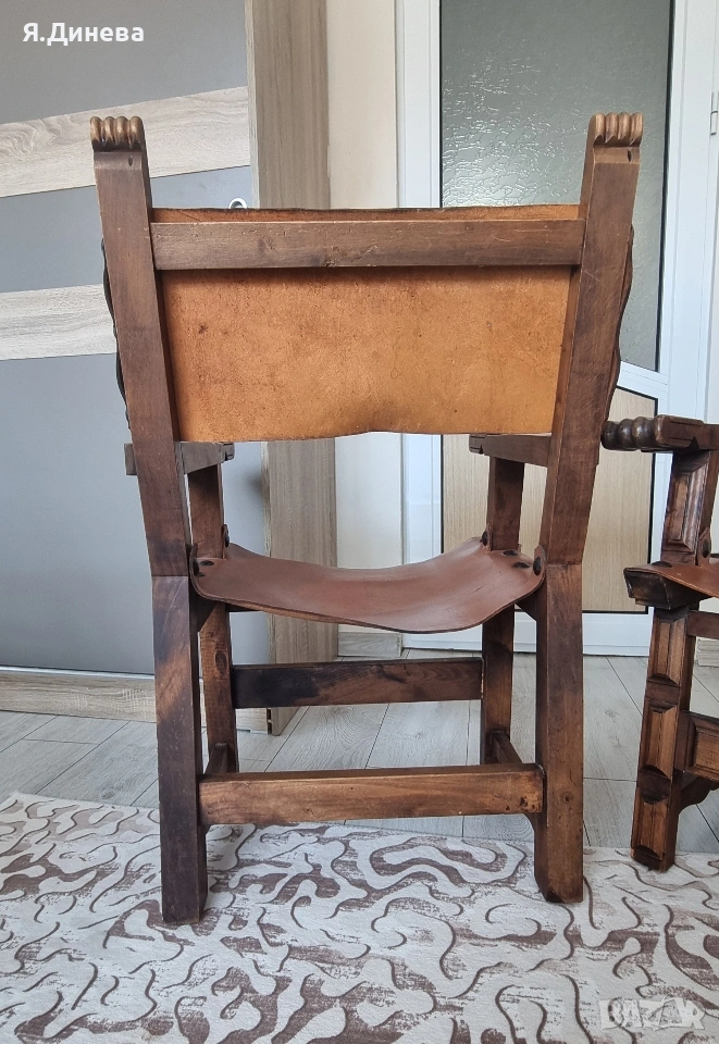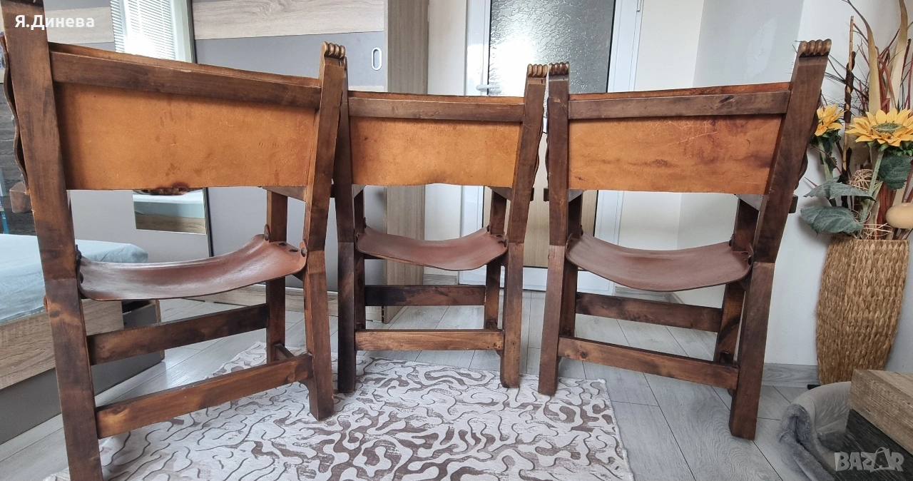Продавам старинни винтич столове от масивно дърво и телешка кожа. С красив дизайн и елементи,удобни и стилни. Подходящи за механи, ретро стил. За ценителите на винтич мебели. Внос от Германия цената е за брой имаме само 3бр. При покупка на всичите промо цена!!!!
