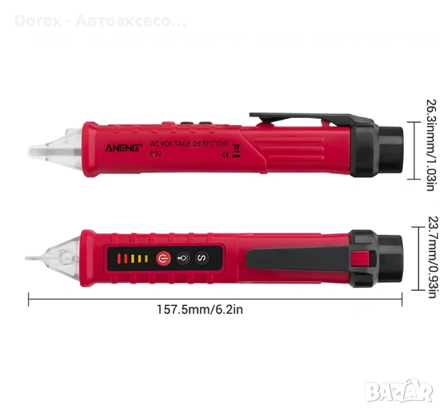 Компактен и удобен тестер за напрежение с дигитален дисплей и джобен клип.