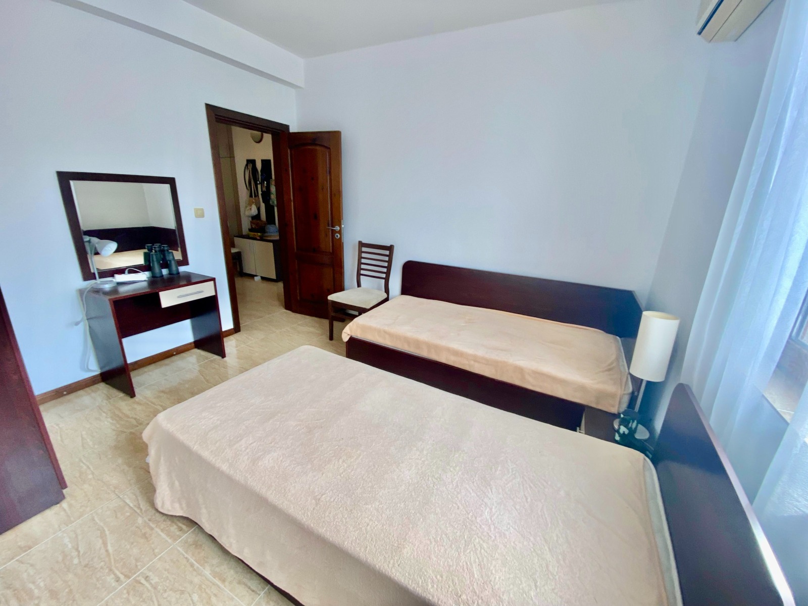 Предлагаме за продажба просторен обзаведен тристаен апартамент в близост до морския бряг в к-с Трявна , град Свети Влас. Апартаментът се намира на втори жилищен етаж в седеметажна сграда с асансьор, и е с квадратура 100 кв.м. Комплексът се намира в близост до плажа, на 250 метра от яхтено пристанище Марина Диневи . Разпределение на апартамента: просторна дневна с кухненски бокс и кът за хранене, зона за отдих, 2 спални, коридор, 2 бани с тоалетна едната с душ кабина, а другата с вана, просторна тераса с гледка към красиво озеленените площи на комплекса. На разположение на собствениците и гостите са: басейна с детска секция, паркинг, добре поддържани, красиво озеленени общи площи, денонощна охрана и поддръжка, видеонаблюдение. Акт 16 и битов ток. Годишна такса поддръжка 600 евро на кв.м. Апартаментът е изключително подходящ за живеене и отдаване под наем целогодишно.