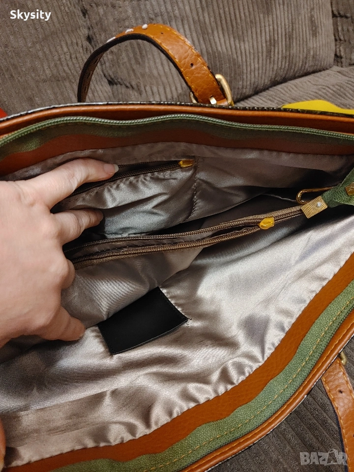 Зелена с кафяви дръжки Alba Vanesa с размер 48/28см(липсват две от дръжките на малкте ципчета вътре,ако някой я иска ше сложа други)