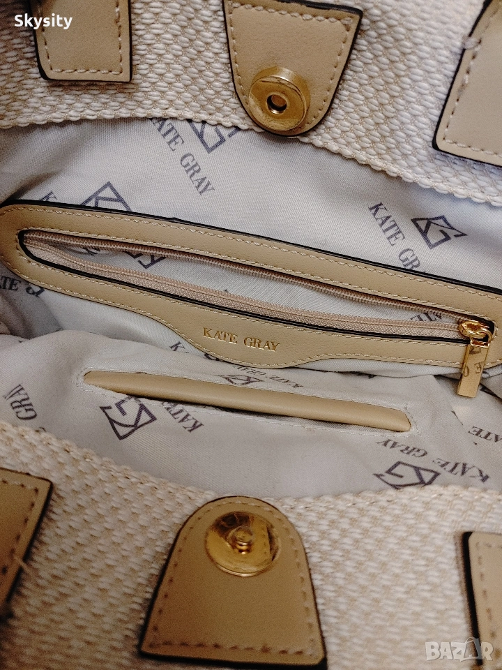 Бежава Kate Gray размер 26/33см,( има малко мръсно по дръжките,ако някой я иска ще я изчистя)