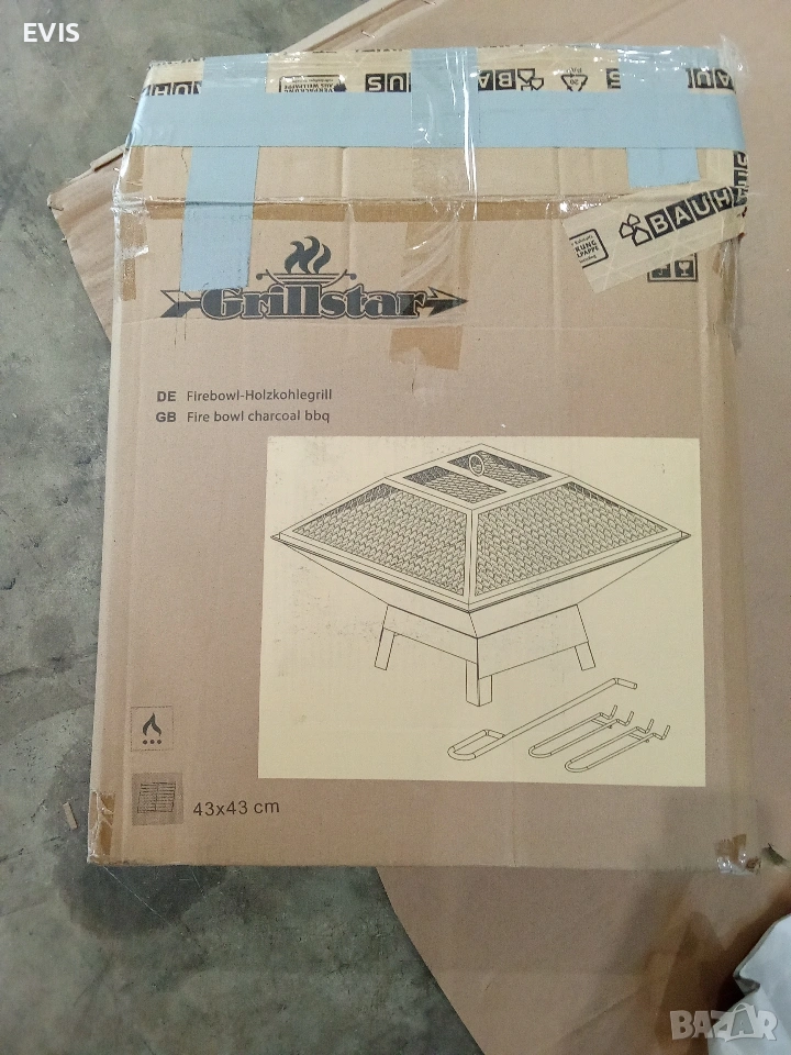 Grillstar Огнище с Грил (43х43 см) – Внос от Германия ​Продавам практично комбинирано огнище и барбекю на дървени въглища Grillstar. Продуктът е част от разнообразна палетирана стока, внесена директно от Германия. ​Основни характеристики: ​Размери: 43 х 43 см (компактно и удобно за всяка градина или тераса). ​Функционалност: Може да се използва като огнище за уют или като класическо барбекю. ​Комплект: Включва предпазна решетка против искри и аксесоари за безопасно боравене. ​Състояние: ​Продуктът е нов, но има козметични забележки – леки надрасквания в зоната за горене на въглищата (видими на снимките). Цената е съобразена със състоянието му! ​Доставка: ​Изпращам бързо и сигурно с Еконт или Спиди с опция преглед преди плащане