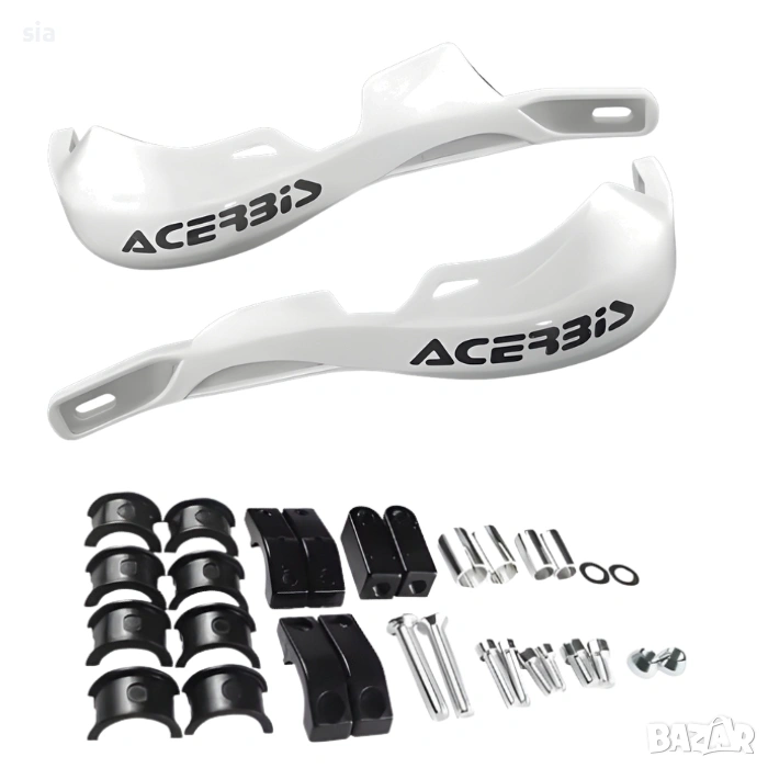 Универсални предпазители за ръце (гардове) тип Acerbis, подходящи за широка гама мотоциклети и АТВ-та. Предпазителите са изработени от висококачествена, удароустойчива пластмаса с вградена алуминиева шина за максимална здравина и защита при падане или удар от клони и камъни. Изработени от устойчив висококачествен пластмасов материал с подсилена конструкция, гардовете комбинират лекота и здравина. Вграденият алуминиев носач осигурява допълнителна стабилност и надеждност при натоварване.