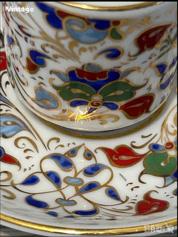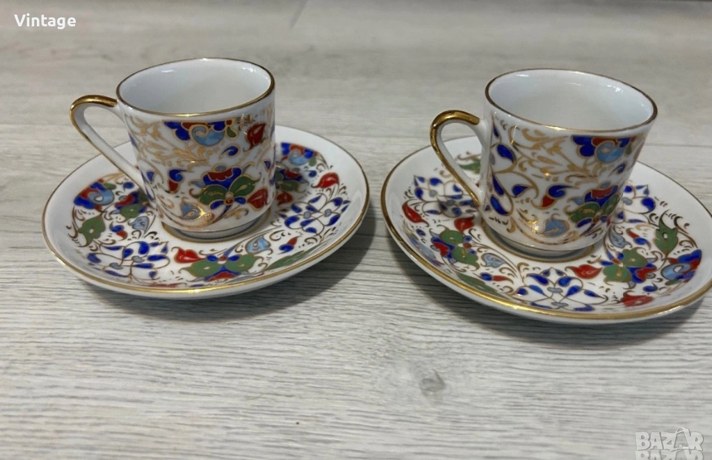 Порцеланов двоен сет за кафе ръчно рисувана с позлата → Обява 53971902