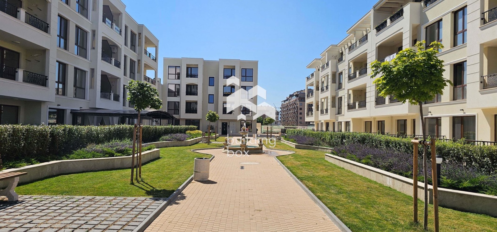 Комплексът впечатлява с красиво озеленен и отлично поддържан двор, който създава спокойна и приятна среда за живеене.