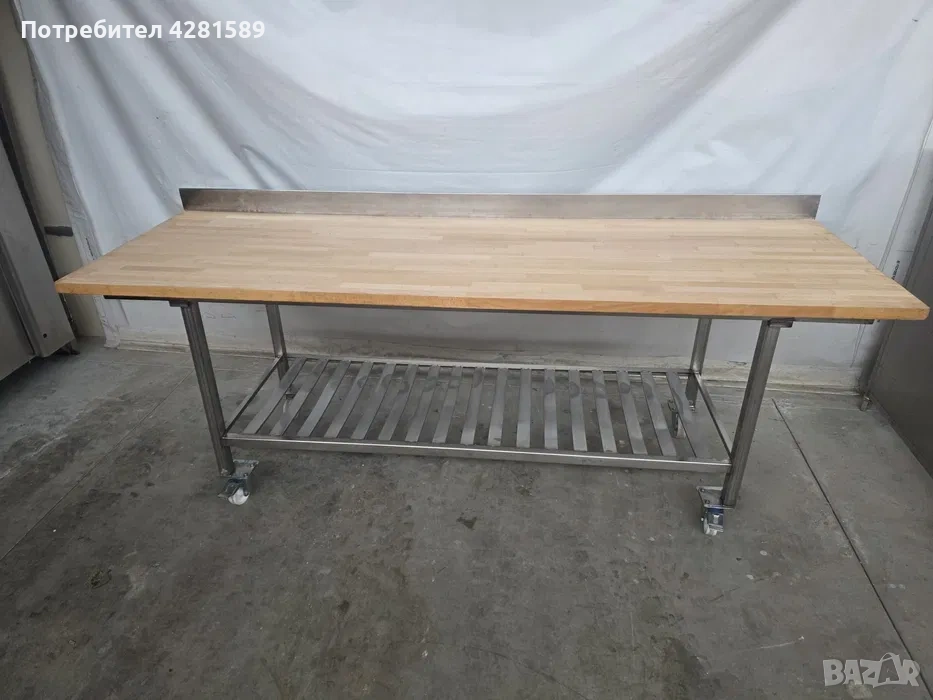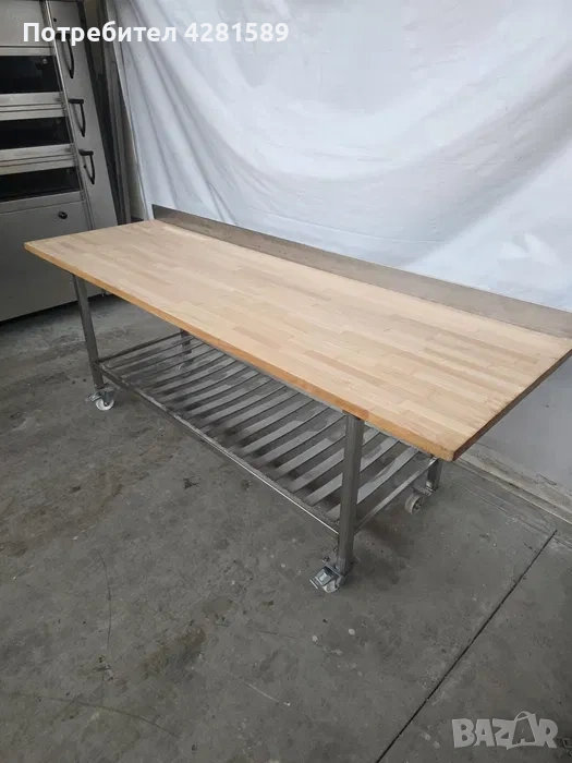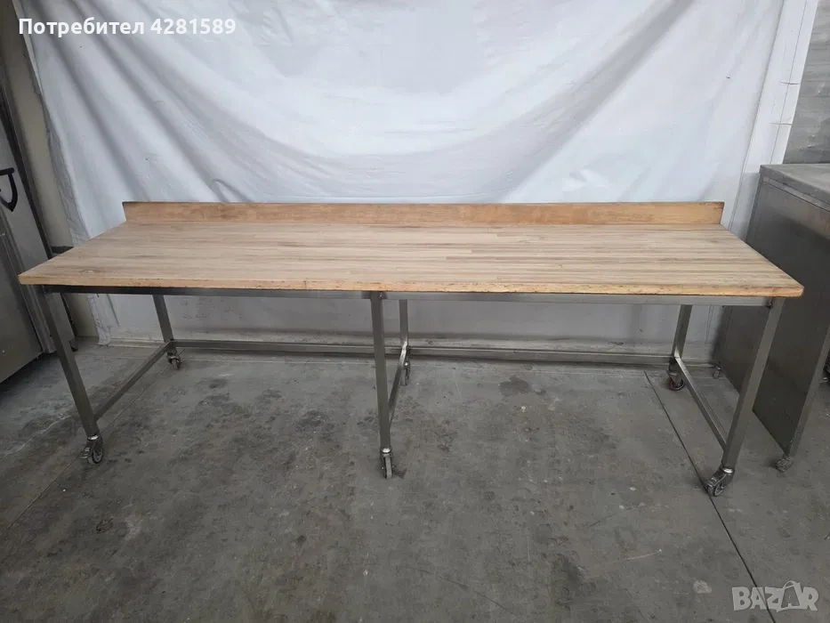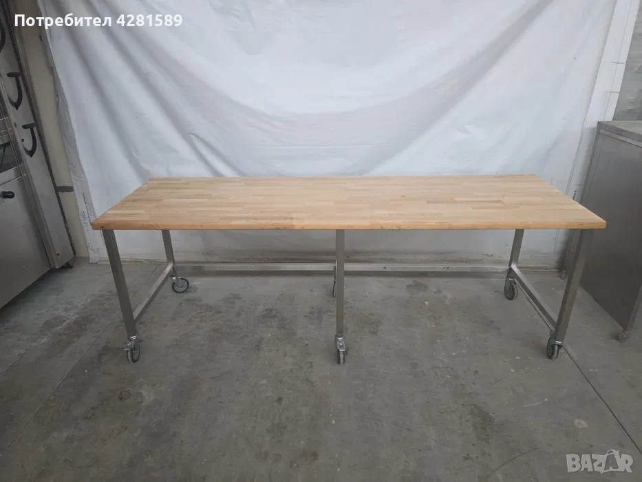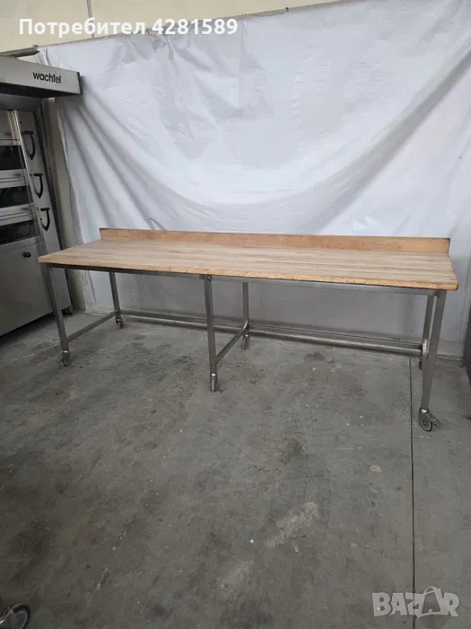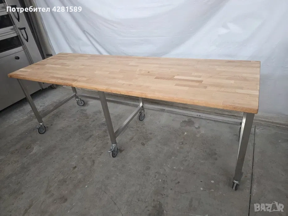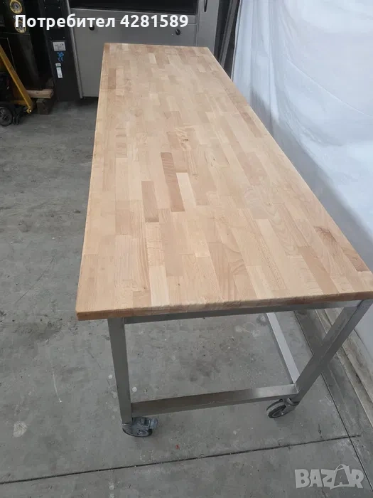 Продавам немски работни хлебарски букови маси с конструкция от неръждаема стомана.Дълбочина на масите:81см,височина-90см.Предлагат се 2бр. с дължина 250см и 1бр. с дължина 300см.