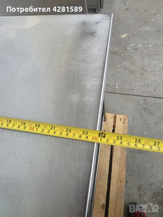 Продавам немска работна маса изцяло от неръждаема стомана със следните размери:дължина:15см,дълбочина:60см,височина:77см.