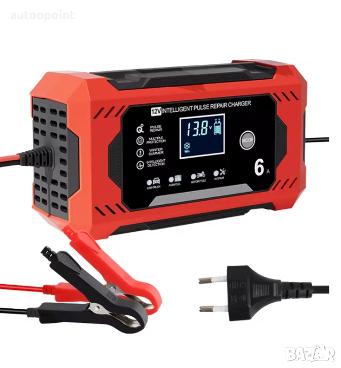 - Интелигентно зарядно устройство с микропроцесорно управление, предназначено за зареждане, поддържане и възстановяване на различни типове 12V батерии. Подходящо както за ежедневна употреба, така и за професионални сервизи.