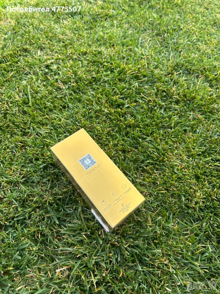 Парфюмът е в елегантна златна опаковка, както се вижда на снимките.