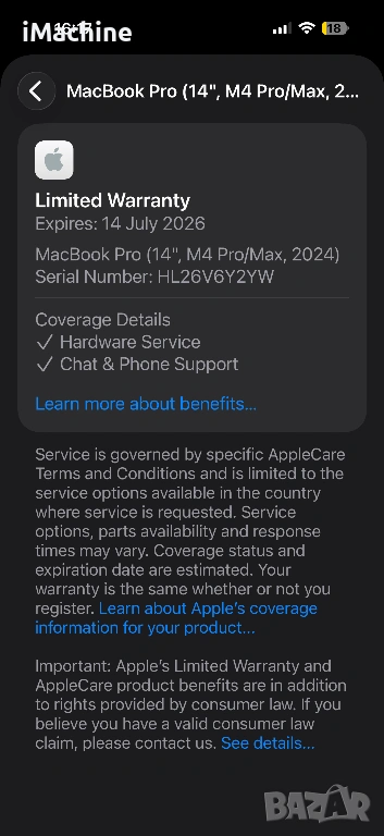 МАШИНАТА Е В МЕЖДУНАРОДНА ГАРАНЦИЯ ДО 14.07.2026г