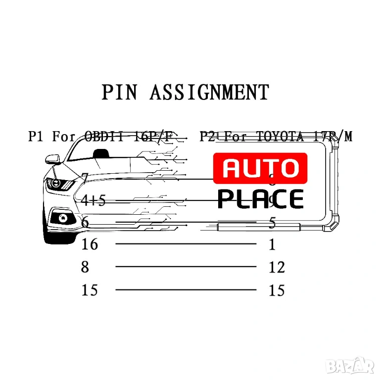 Кабел / Преходник / Адаптер за Toyota 17 Пина 17 Pin Тойота Delphi → Обява 53972931