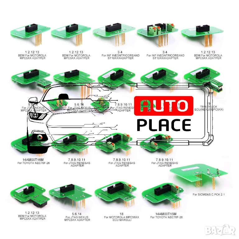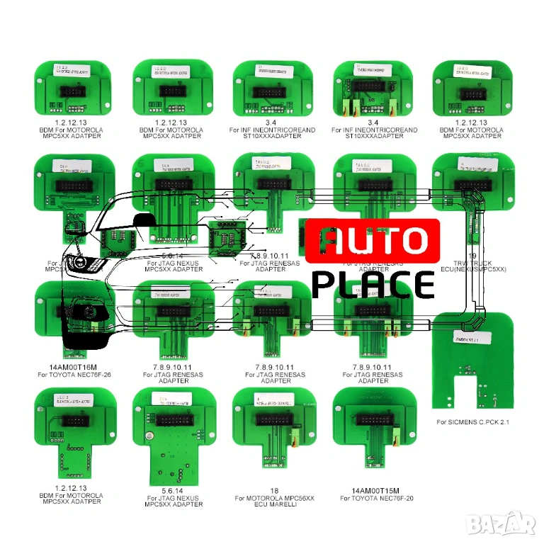 Професионален комплект от 22броя BDM адаптера, съвместими с Ktag Kess KTM100 MagPro MPPS V18 MPPS V21 и други.