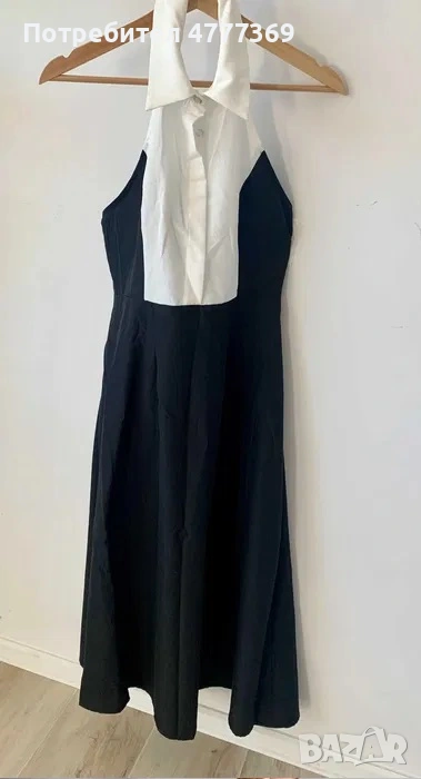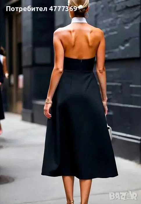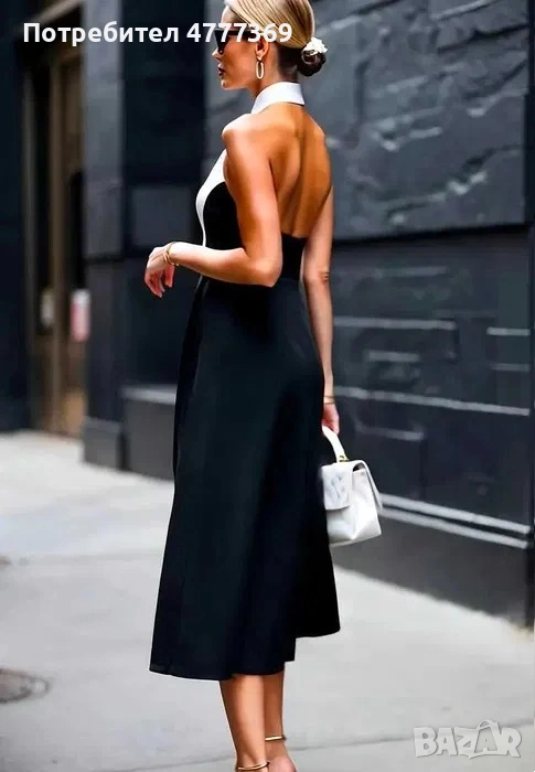 Дамска елегантна рокля с яка и гол гръб в бяло и черно → Обява 53973003